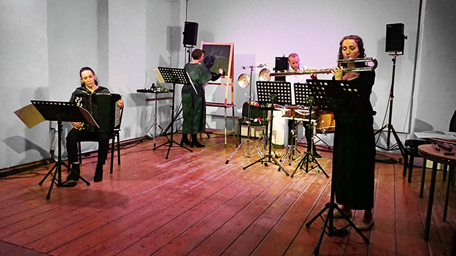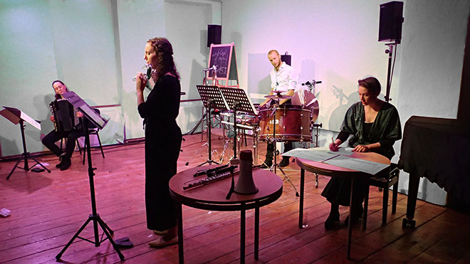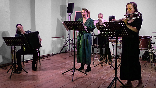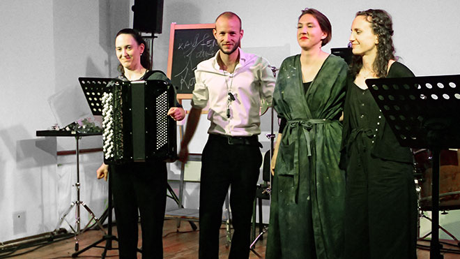 Elina Viluma-Helling: Stimme · Audrey G. Perreault: Flöten · Maria Mogas Gensana: Akkordeon · Hannes Schöggl: Perkussion