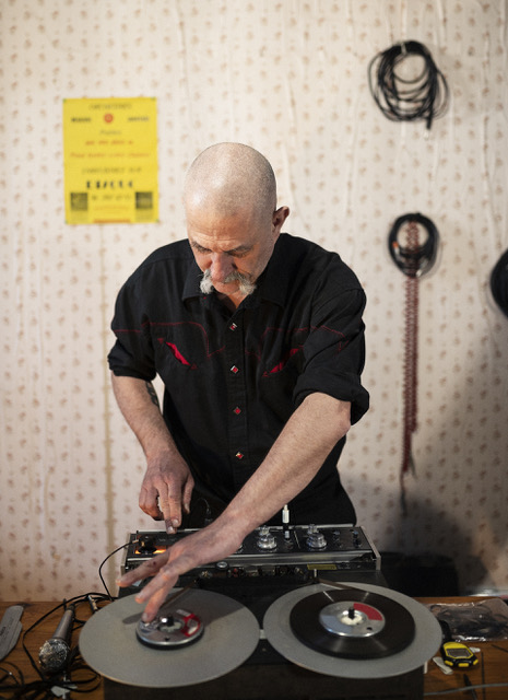 Jérôme Noetinger (1966) is a composer, improviser and sound artist who works with electroacoustic devices such as the Revox B77 reel-to-reel tape recorder and magnetic tape, analogue synthesisers, mixing desks, speakers, microphones, various electronic household/everyday objects and home-made electronica. He performs both solo and in ensembles (Cellule d’Intervention Metamkine, Le Un, Hrundi Bakshi, Les Sirènes…), and collaborates often (Sophie Agnel, Angelica Castello, dieb13, Lionel Fernandez, Anthony Laguerre, Lionel Marchetti, Anthony Pateras, Aude Romary, Petr Vrba). From 1987 to 2018, he was the director of Metamkine, a non-profit organisation dedicated to the distribution of improvised and electroacoustic music. Between 1987 and 2014 Jérôme was a member of the editorial committee of the quarterly journal of contemporary sound, poetry and performance, Revue & Corrigée. For ten years from 1989, he was a member and programming co-ordinator of exhibitions, gigs, and experimental cinema at le 102 rue d’Alembert, Grenoble.