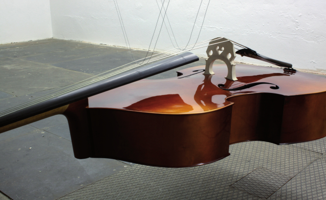 Das Stück ist eine Erweiterung der Installation Resonanzbass von 2010.