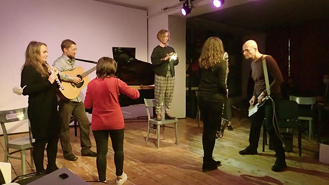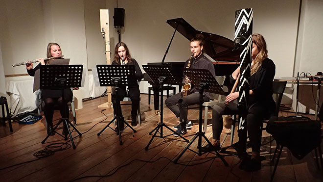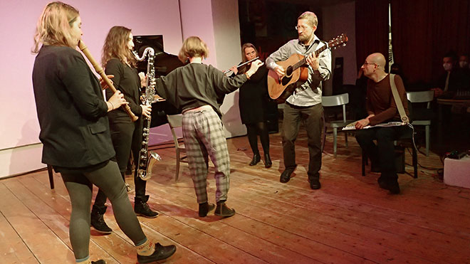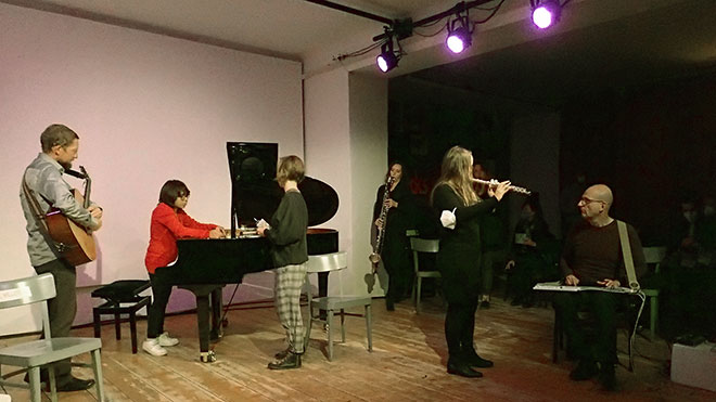 Gobi Drab, Steffi Baron-Neuhuber, Reni Weichselbaum: Blockflöten · Meike Melinz: Flöte · Theresa Dinkhauser: Klarinette · Gabi Teufner: Flöte, Saxophon · Thomas Grimm: Fagott · Laura Pudelek: Violoncello · Klaus Haidl, Bernhard Schöberl: Gitarre · Manon Bancsich: Klavier · Gloria Damijan: Klavier, toy-piano · Angela Stummer-Stempkowski: Harfe · Veronika Mayer: Elektronik · Michael Zacherl: scivolo