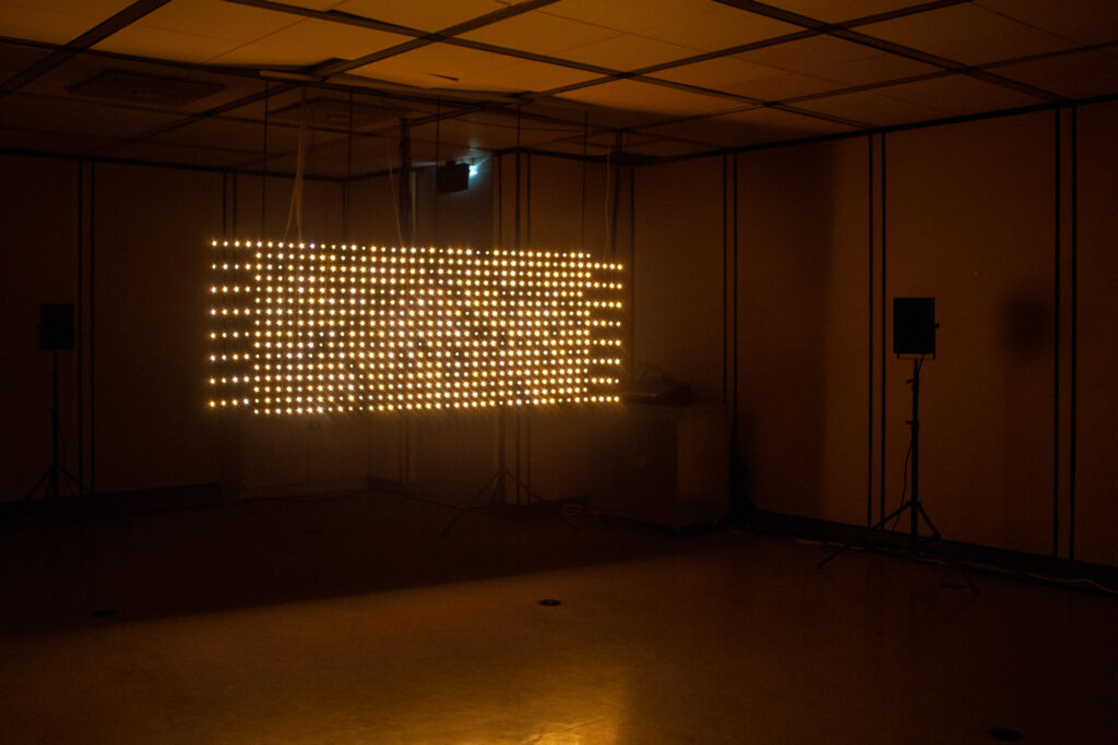 An dem Abend entsteht ein Austausch zwischen der Installation „Simulacrumbs“ als Licht- und Geräuschquelle und live gespielten Filtern und Steuerelektronik. Es bildet sich ein Schaltkreis aus Übersetzungen von Licht zu Signal zu Schall zu Lichtschalter.