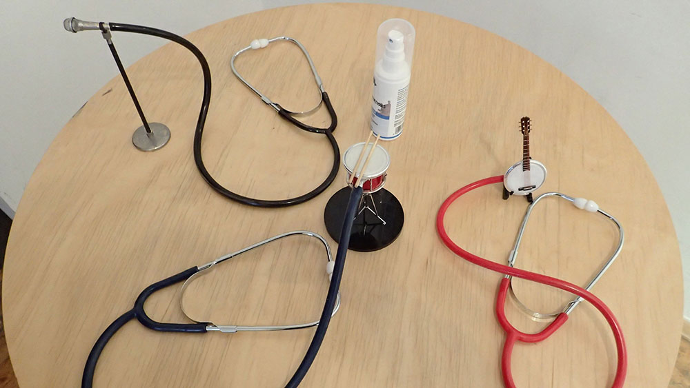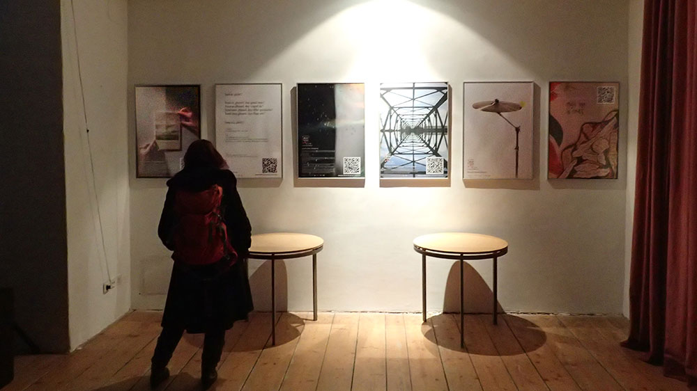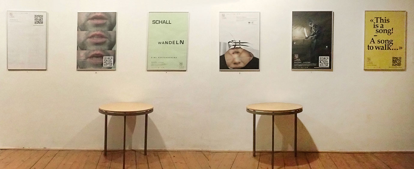 Plakate für die Litfaßsäulen entlang des Soundwalks durch den 15. Bezirk, EingangsbereichPlakate für die Litfaßsäulen entlang des Soundwalks und Objekte Anna Vasof, BarraumPlakate für die Litfaßsäulen entlang des Soundwalks durch den 15. Bezirk, BarraumAnna Vasof: Knocking on my Doors und Übersicht BarraumAnna Vasof: Medical Instruments, 2021