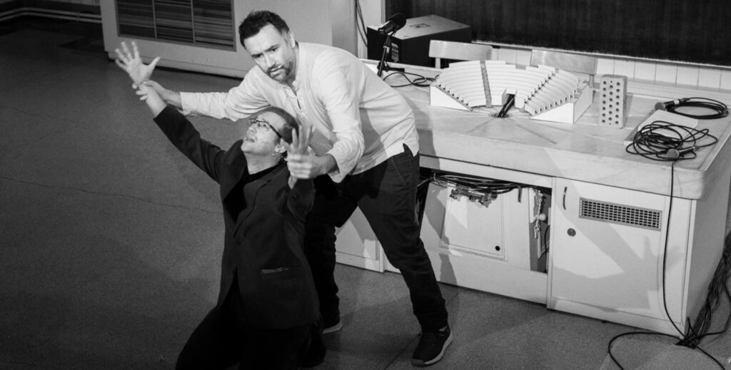 An intimate and fragile exploration of control, manipulation, and intimacy unfolds through a surreal interplay of music and language. Two men navigate a live rehearsal shaped by a long creative process, testing the limits of their dynamic. The performance balances between cringe and tenderness, testing the audience’s sense of boundaries.