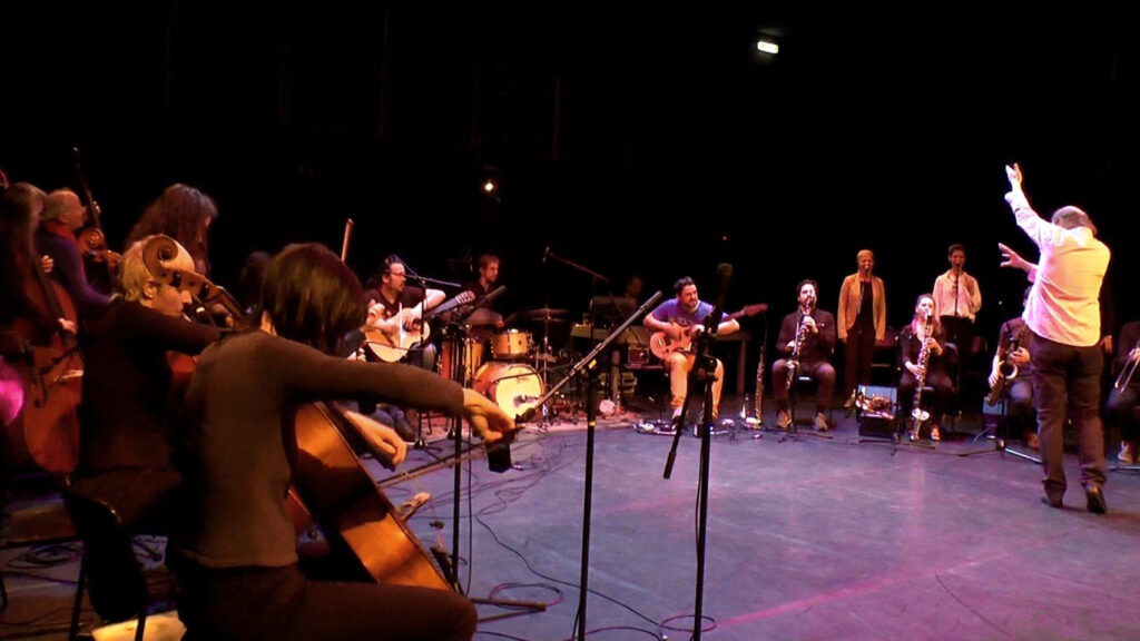 Within an oscillating process musicians/ensemble and the instant composition conductor create ad hoc compositions. With a vocabulary of hand signs for dynamics, pitch, tempo, duration a.o., an architecture of a music piece is formed, balanced and designed by the conductor. – On the basis of freely improvised music, the musicians interprete these signs with their personal individuality and musical experience. https://www.youtube.com/watch?v=zeq4_eRWF1A