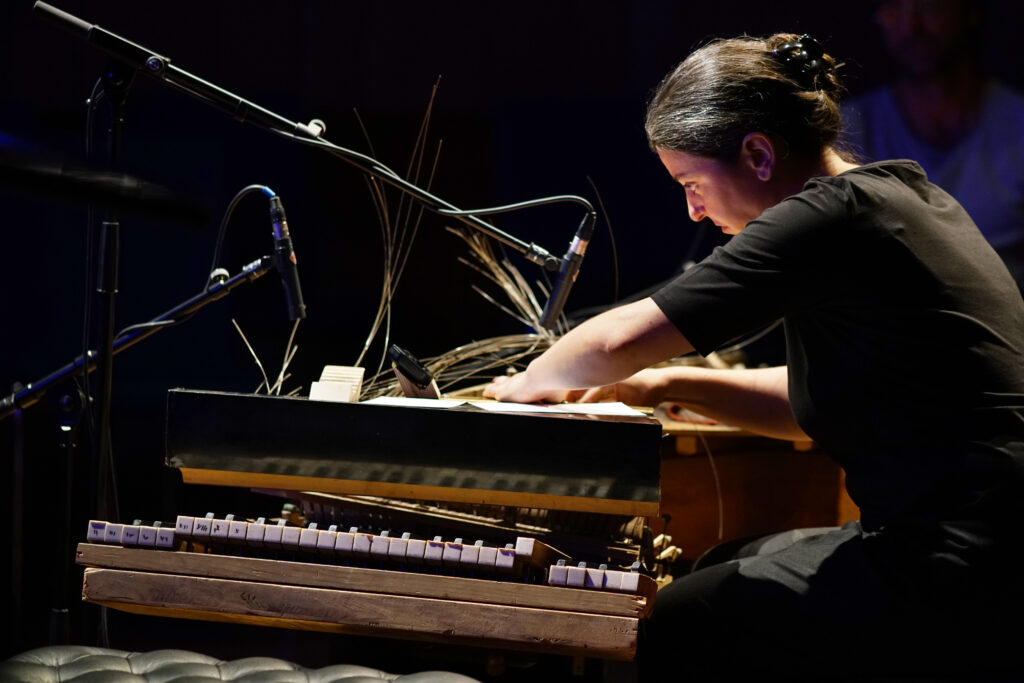 Judith Unterpertinger über 4 mg für Pianoguts, Tomtoms und Tape (2019):
