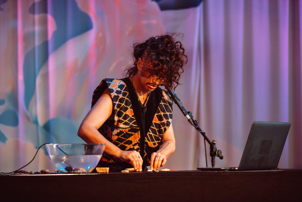 Bassano Bonelli Bassano is a sound artist living in Vienna. They create multichannel performative installations, along with soundscapes, and compostions for performance, theater, dance, and video art. Bassano engages with listening as a perpetual ontolog- ical question and as a means of sound production. They frequently work with voice, breath, waters, stones, and microphones (conventional, self-made) as their companion instruments. Their compositions weave digital, mineral, and organic sounds, layering them into immersive haptic soundscapes. Recording with
