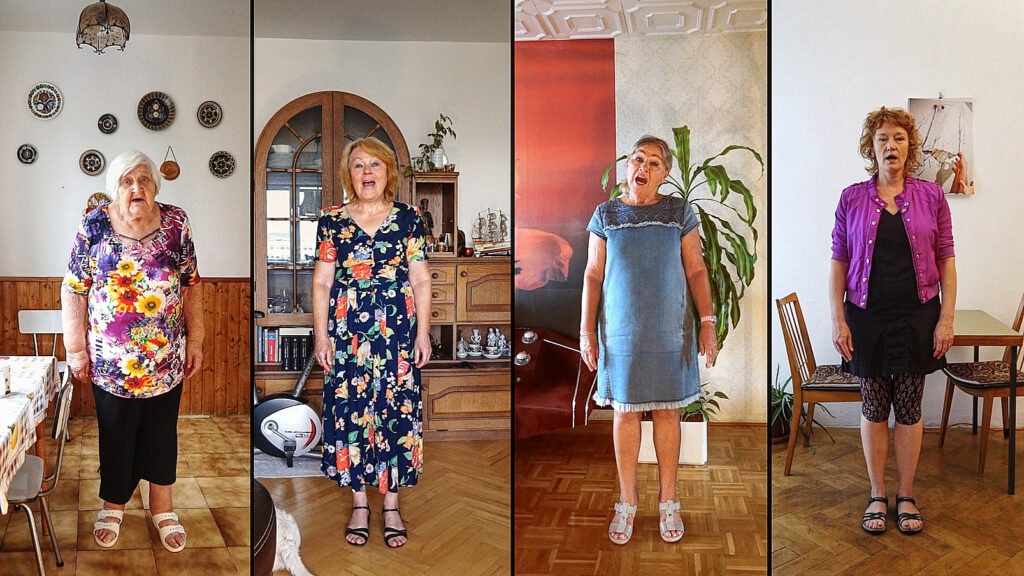 The only song I remember in Slovak is a video that gathers three generations of women, each singing a Slovak folk song in their home, and compares spaces, generations, song interpretations, and relationships. The fourfold performance is mounted in such a way that all women (grandma–aunt–mother–daughter), although standing in their rooms, sing a song together, the only one I can still sing in Slovak. Teil von Nichts als Gespenster. Part of Nothing but ghosts.
